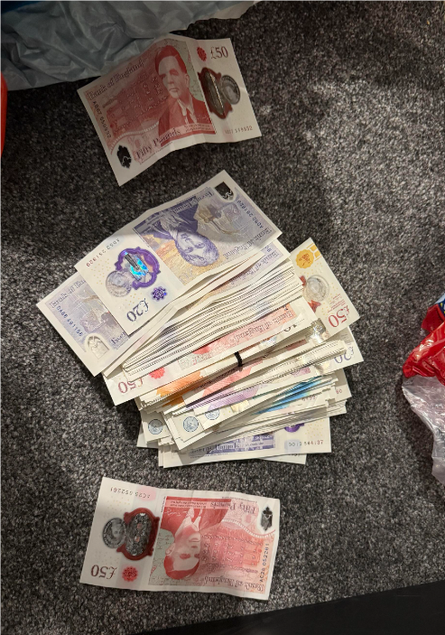 Tuesday’s operation uncovered a mobile phone, an estimated £500-worth of class A drugs and £5,000 in cash.